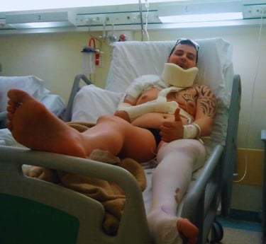 Quattro mesi in ospedale. Dolore, fisioterapia, sedia a rotelle.